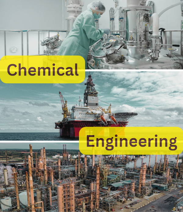 Chemical engineering is a branch of engineering that combines chemistry, physics, mathematics, and other disciplines to design and develop processes for the production, transformation, and transportation of chemicals, materials, and energy. Chemical engineers apply principles of chemistry, thermodynamics, and fluid mechanics to design, operate, and optimize chemical processes in industries such as pharmaceuticals, food and beverage, oil and gas, and many more. They are involved in the entire life cycle of a chemical product, from research and development to manufacturing and distribution. Chemical engineers play a critical role in improving the efficiency and sustainability of chemical processes while ensuring safety and environmental compliance.